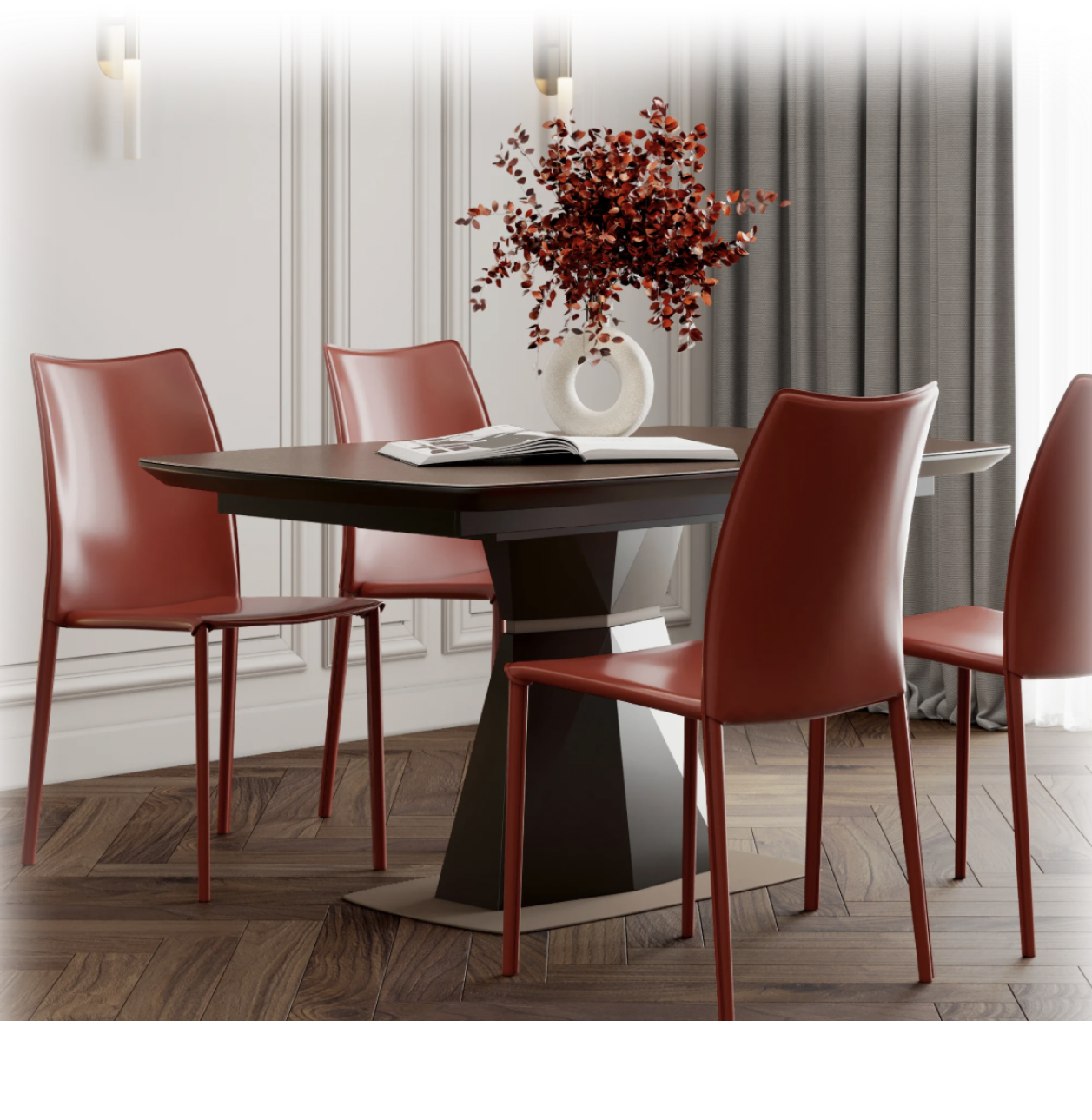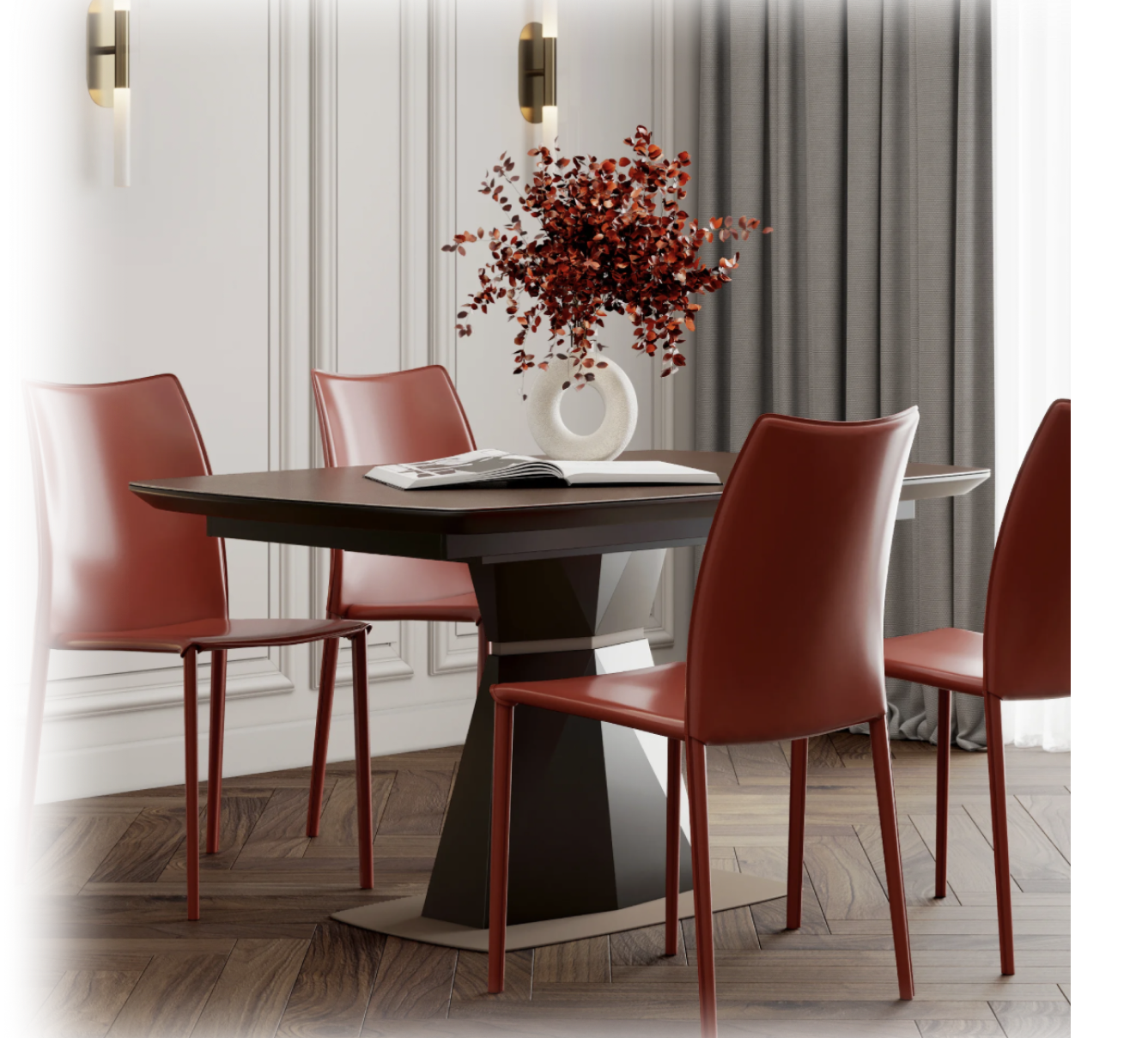 Элегантный стол с керамической столешницей обязательно станет центральным элементом обеденной зоны или кухни
